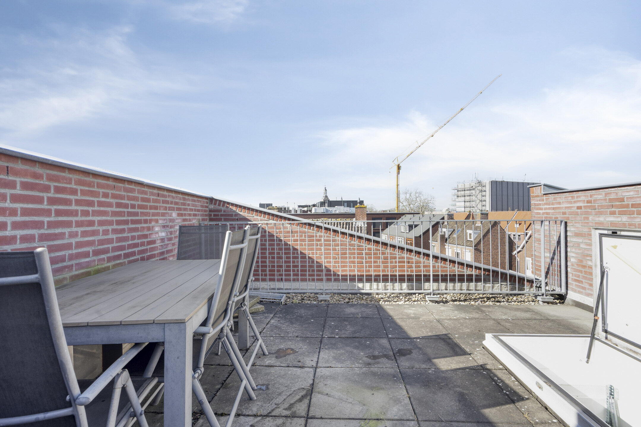 Via een vlizotrap bereik je het gezellige privé dakterras. Een fijne plek waar je altijd zon hebt en in alle rust kunt genieten van de buitenlucht, een kop koffie in de ochtend of een drankje in de zon.